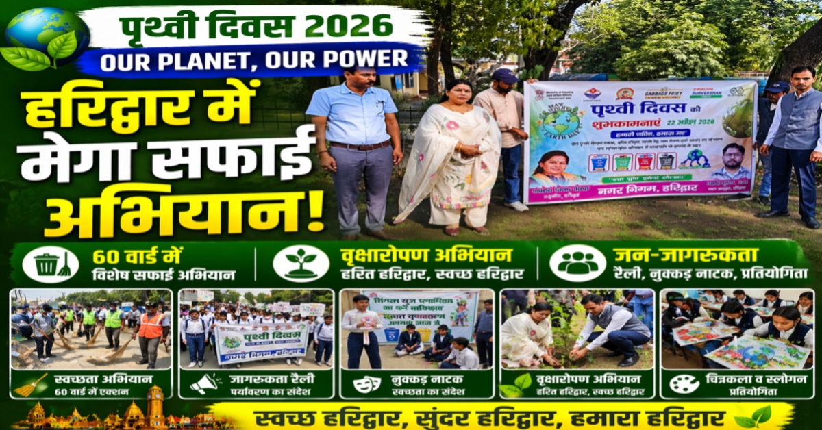 Haridwar Earth Day पर हरिद्वार चमका! नन्दन कुमार और किरण जैसल का संयुक्त अभियान! 23 April 2026 Voice Of India हरिद्वार।संजीव मेहता ।नगर आयुक्त श्री नन्दन कुमार, आईएएस के निर्देश पर पृथ्वी दिवस के अवसर पर नगर निगम हरिद्वार ने “Our Planet, Our Power” थीम के तहत शहरभर में भव्य…