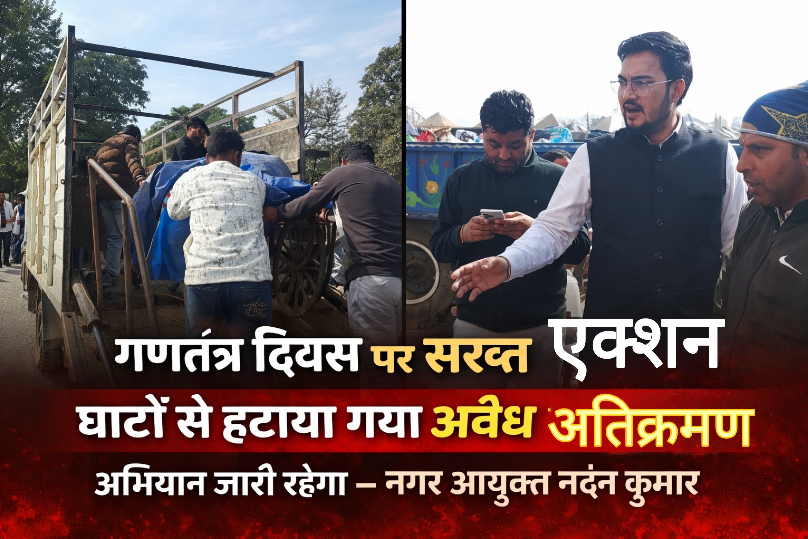 Haridwar हरिद्वार | गणतंत्र दिवस पर नगर निगम का सख्त एक्शन, घाटों से हटाया गया अवैध अतिक्रमण 26 January 2026 Voice Of India हरिद्वार संजीव मेहता। नगर निगम हरिद्वार द्वारा जिलाधिकारी एवं नगर आयुक्त नंदन कुमार के निर्देशानुसार 26 जनवरी 2026 को नगर क्षेत्र में अतिक्रमण हटाओ अभियान सख्ती के साथ संचालित किया…