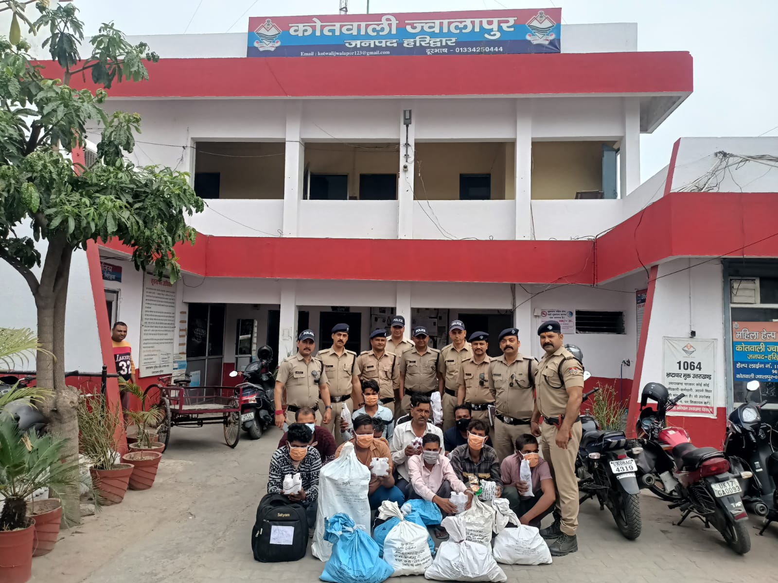हरिद्वार, संजीव मेहता। नशा तस्करों के विरुद्ध हरिद्वार पुलिस की तावड़तोड़ कार्यवाही जारी खुले में शराब पिलाने पर होटल ढाबा संचालकों के विरुद्ध भी की गई कार्यवाही माननीय मुख्यमंत्री उत्तराखंड महोदय के ड्रग्स फ्री देवभूमि अभियान 2025 के तहत/आगामी लोकसभा चुनाव के दृष्टिगत जनपद को नशा मुक्त करने व नशा (अवैध शराब/स्मैक/चरस/ गांजा आदि) तस्करी करने/होटल ढाबा में शराब पिलाने वालो के विरुद्ध श्रीमान वरिष्ठ पुलिस अधीक्षक महोदय जनपद हरिद्वार द्वारा चलाये जा रहे अभियान को सफल बनाने के क्रम में प्रभारी निरीक्षक ज्वालापुर को निर्देशित किया गया । जिसके अनुपालन में पुलिस टीम द्वारा दिनांक 23/03/2024 को थाना क्षेत्रांतर्गत से अलग-अलग स्थानों से कार्रवाई करते हुए 11 शराब तस्कर, खुले में शराब पिलाने वाले ढाबा संचालकों को अंग्रेजी/देशी शराब के साथ अलग अलग स्थानों से दबोचा गया। गिरफ्तार अभियुक्त गण1-दीपक पुत्र मंन्जू निवासी मोहल्ला चकलान कोतवाली ज्वालापुर हरिद्वारमु0अ0स0-299/2024 धारा 60आवकारी अधिकारीबरामदगी52 पव्वे देशी शराब पिकनिक मार्का 2-रोहित उर्फ बदल पुत्र कुबेर सिंह निवासी ग्राम अहिरवा थाना भोगांव जिला मैनपुरी हाल निवासी मोहल्ला मालियांन कोतवाली ज्वालापुर हरिद्वारमु0अ0स-300/2024 धारा 60आवकारी अधिकारीबरामदगी54 पव्वे देशी शराब पिकनिक मार्का 3-हरिशंकर उर्फ छोटू पुत्र स्वर्गीय किशन लाल निवासी लाल मंदिर बस्ती जग्गु घाट कोतवाली ज्वालापुर हरिद्वारमु0अ0स0-301/2024 धारा 60आवकारी अधिकारीबरामदगी60 पव्वे देशी शराब पिकनिक मार्का 4-सुनील कुमार पुत्र रतनलाल निवासी गणेश विहार कोतवाली ज्वालापुर हरिद्वारमु0अ0स0-302/2024 धारा 60आवकारी अधिकारीबरामदगी12 बोतल अंग्रेजी देशी MC Dowells मार्का 5-मनप्रीत पुत्र जगत सिंह निवासी मोहल्ला कडच्छ कोतवाली ज्वालापुर जनपद हरिद्वारमु0अ0स0-303/2024 धारा 60/21 आ0अधिनियम05 पव्वे बन्द 02 पव्वे खुले नमकीन 6-अरविंद कुमार पुत्र हृदय राम निवासी मोहल्ला कड़च्छ कोतवाली ज्वालापुर हरिद्वारमु0अ0स0304/2024 धारा 60/21 आ0अधिनियमबरामदगी05 पव्वे बन्द 01अदधा पव्वे 2पव्वे खुले 4 गिलास/नमकीन के पैकेट 7-शिव प्रसाद पुत्र बच्ची राम निवासी खन्ना नगर ज्वालापुर हरिद्वारमु0अ0स0-306/2024 धारा 60आवकारी अधिकारीबरामदगी52 पव्वे देशी शराब पिकनिक मार्का 8-मोहित शर्मा पुत्र विनोद शर्मा निवासी रानी गली भूपतवाला कोतवाली नगर जनपद हरिद्वारबरामदगी12 बोतल वीयर बटवाईजर12 बोतल अंग्रेजी शराब रायल स्टैग मार्का 9-सत्य प्रकाश पुत्र स्वर्गीय उपेंद्र सिंह निवासी राजीव नगर आर्य नगर ज्वालापुर हरिद्वारमु0अ0स0-308/2024 धारा 60आवकारी अधिकारीबरामदगी52 पव्वे देशी शराब पिकनिक मार्का 10-कमल सैनी पुत्र धर्मपाल सैनी निवासी गोविंदपुरी कोतवाली ज्वालापुर हरिद्वारमु0अ0स0-309/2024 धारा 60आ