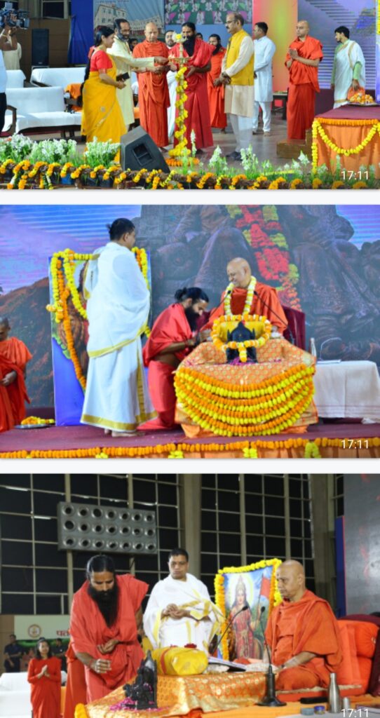 भारत को वापस कैसे जोड़ा जा सकता है, इस संकल्प को जागृत करें : स्वामी रामदेव शक्ति व मर्यादा साधना का महापर्व चैत्र नवरात्रि व रामनवमी के उपलक्ष्य में वेदधर्म व ऋषिधर्म के संवाहक परमपूज्य योगऋषि स्वामी रामदेव जी महाराज के 30वें संन्यास दिवस के पावन अवसर पर परम पूज्य स्वामी श्री गोविन्ददेव गिरि जी महाराज के श्रीमुख से हिन्दवी स्वराज के प्रणेता छत्रपति शिवाजी महाराज की यशोगाथा “छत्रपति शिवाजी महाराज कथा’’ का शुभारम्भ आज योगभवन, पतंजलि योगपीठ-2 के सभागार में हुआ। कथा के प्रथम दिन पूज्य स्वामी रामदेव जी महाराज व श्रद्धेय आचार्य बालकृष्ण जी महाराज ने व्यासपीठ को प्रणाम करते हुए पूज्य गोविन्ददेव गिरि जी महाराज से कथा प्रारंभ करने का अनुरोध किया।