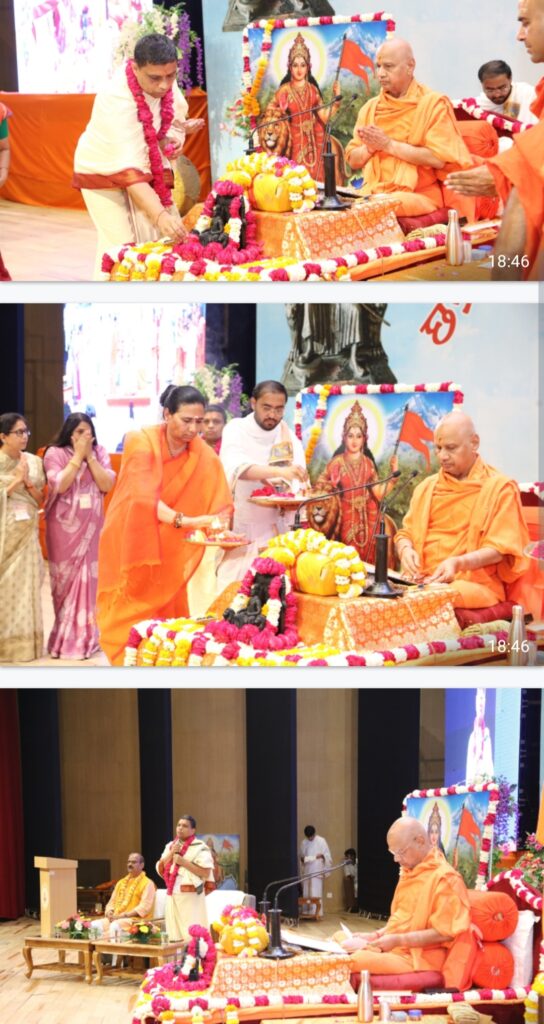 हरिद्वार, 11 अप्रैल,संजीव मेहता। परम पूज्य स्वामी श्री गोविन्ददेव गिरि जी महाराज के श्रीमुख से “छत्रपति शिवाजी महाराज कथा’’ के तीसरे दिन का शुभारम्भ पतंजलि विश्वविद्यालय प्रांगण स्थित सभागार में हुआ जहाँ आचार्य बालकृष्ण जी महाराज ने व्यासपीठ को प्रणाम करते हुए स्वामी गोविन्द देव गिरि जी महाराज से कथा प्रारंभ करने का अनुरोध किया।