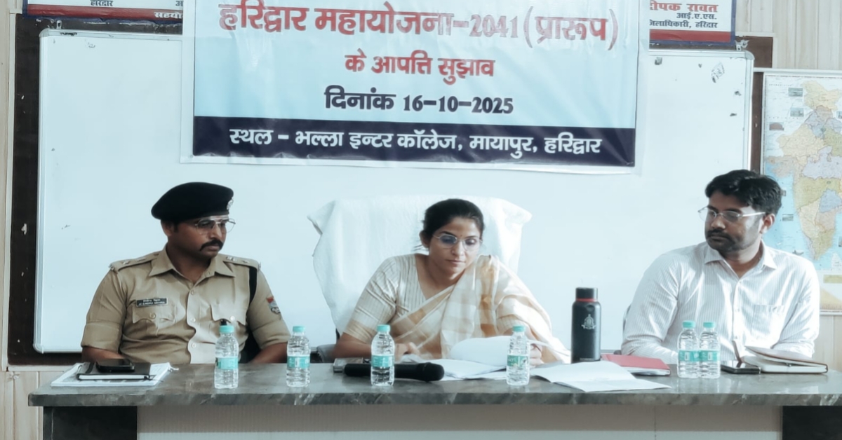हरिद्वार —संजीव मेहता। हरिद्वार महायोजना-2041 (प्रारूप) पर प्राप्त आपत्तियों और सुझावों की सुनवाई आज मायापुर स्थित भल्ला इंटर कॉलेज में आयोजित की गई। यह सुनवाई हरिद्वार–रुड़की विकास प्राधिकरण के उपाध्यक्ष की अध्यक्षता में गठित समिति द्वारा की गई, जिसमें प्रभागीय वनाधिकारी हरिद्वार, नगर आयुक्त नगर निगम हरिद्वार, मुख्य नगर एवं ग्राम नियोजक उत्तराखण्ड (सदस्य/समिति सचिव), पुलिस अधीक्षक (यातायात एवं परिवहन) हरिद्वार, अधिशासी अभियंता लोक निर्माण विभाग हरिद्वार और सिंचाई खंड हरिद्वार के अधिकारी शामिल रहे। सुनवाई के दौरान बड़ी संख्या में आपत्तिकर्ता मौजूद रहे। सभी ने अपने-अपने सुझाव और आपत्तियां प्रस्तुत कीं, जिन्हें समिति द्वारा ध्यानपूर्वक सुना गया। 🔹 हरिद्वार के विकास का खाका तय करेगी महायोजना-2041🔹 जनसुनवाई में लोगों ने रखी अपनी राय, समिति ने किया गंभीरता से विचार Post Views: 2,344 Post navigation बुग्गावाला:मावा बनाने वालों की खैर नहीं — बुग्गावाला पुलिस ने बरामद किया 10 क्विंटल नकली मावा ✨हरिद्वार पुलिस का दीपावली गिफ्ट – 32 मोबाइल लौटाकर फिर जीता जनता का दिल!✨